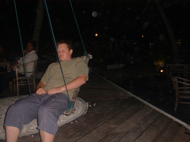 Joel that chair thing he's sitting on is a hammock, there were loads of them all around the island! |